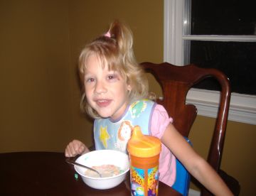 Her first breakfast before school…