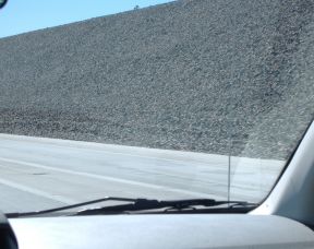 OK, what you see here is rocks along the highway where there is normally grass. I guess it’s what you do when you live in the desert!