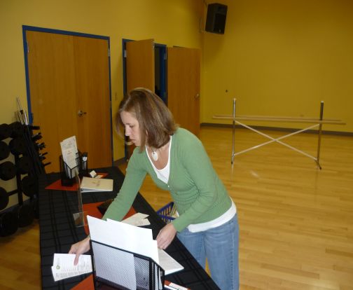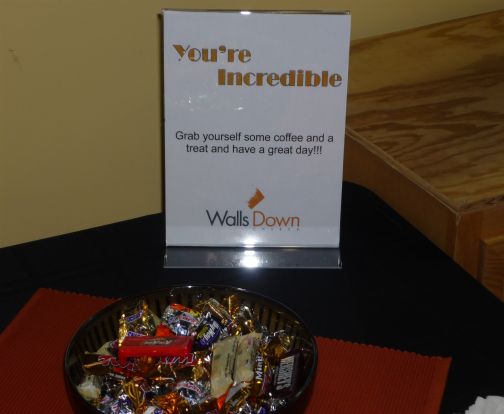 When you walk into the room where we’re meeting with our start team you’ll see this table… (uhhhh, usually there’s candy in the dish too! I apparently captured this pic pre-fill!)
