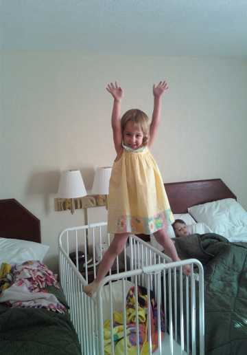 HOWEVER, during our last hotel experience Dallas demonstrated some crazy balancing skills that were so good I asked her to “do it again”… snapped a picture… and now it’s documented for future generations.