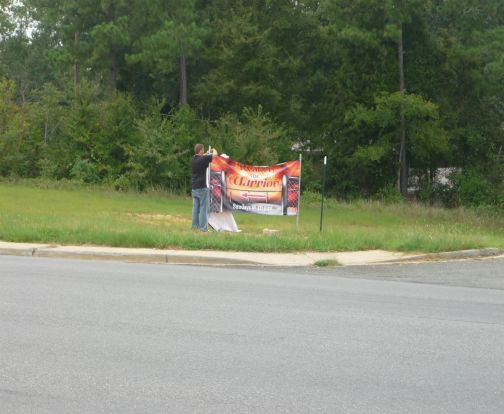 Today we have a 4×8 sign going up on a heavily traveled road right beside our church (India Hook road). It will change with every teaching series. Here’s what it looks like going up…
