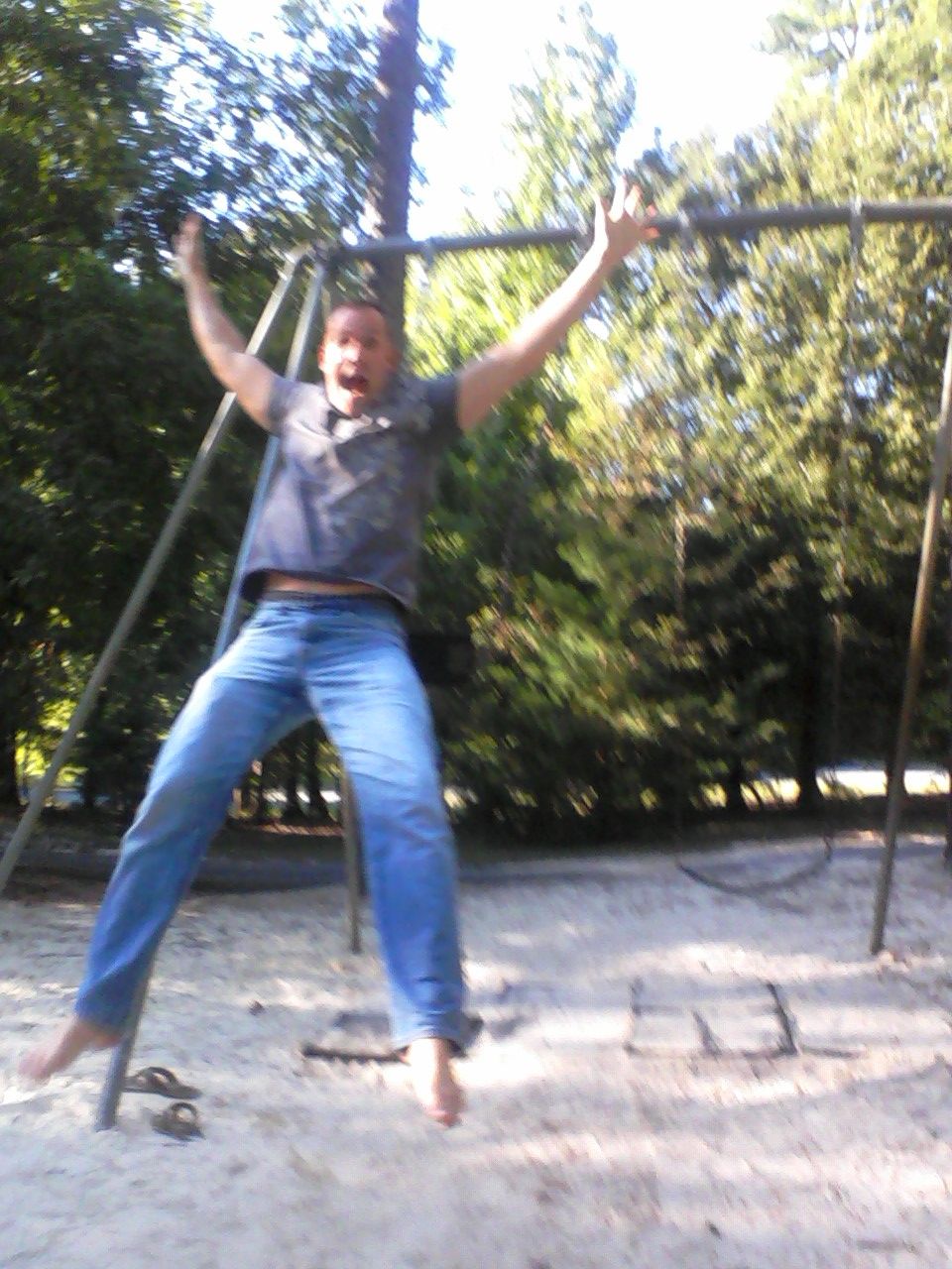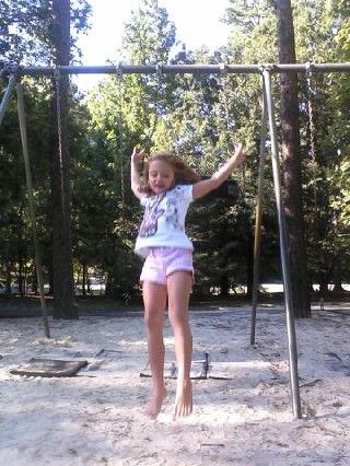 Swinging, playing tag, jumping out of swings, racing across the grass, laughing hard, panting after running… it was an amazing evening!