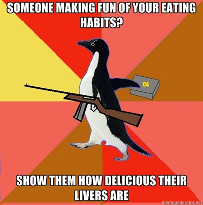 Last night I had a similiar conversation with someone who’s family insists on making negative comments about this individual’s diet (BTW, this person is in great shape and diet is a big part of that shape). I responded with an e-mail: