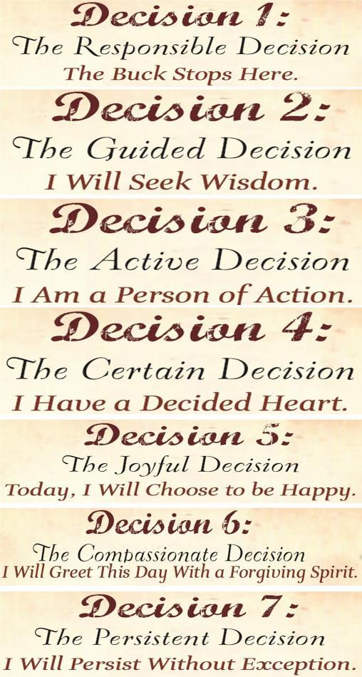 I’ve started reading “The Seven Decisions” and already realize, “this is one of those books that will be read and re-read!” Andy Andrews does an amazing job of crystallizing the keys to personal development!