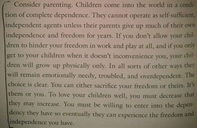 We talked a bit about the fact that paying attention to “the daily details” of being an effective dad can be a bit mundane… even boring at times! But I shared this page from Tim Keller’s book, The Reason for God, that gets right up in our grill: